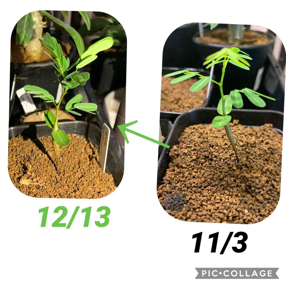 実生のセンナが少しだけ成長しました。相変わらず根本はちょっと頼りないです😅
