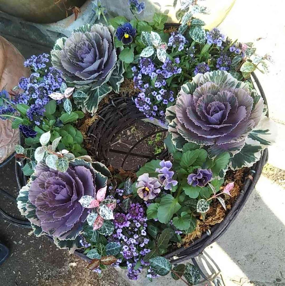 まず葉牡丹を決めて、合せる苗を店内アレコレ迷ってこのアリッサムにしたの〜😄