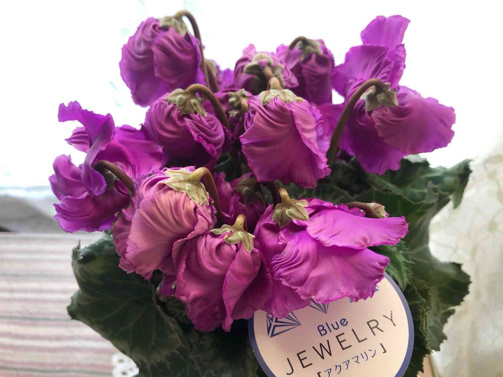 そんな中、近所の花屋さんにブルージュエリーが入ったとのお知らせがあったので見に行くと、ポワンと膨らんだ蕾がたくさんついたシクラメンが❣️