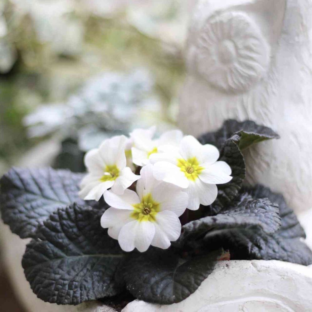 こんなダークな葉色のプリムラがあるんですね。初めて見ました。ステキです✨✨