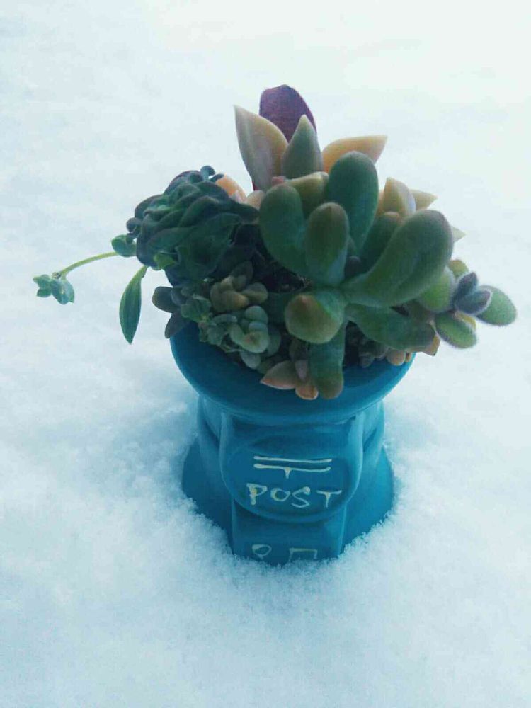 おはようございます🥶やっぱり☃️だねー多肉ちゃん震えてるかな〜💦青いポストがまた可愛い😍風邪ひかないでね👍