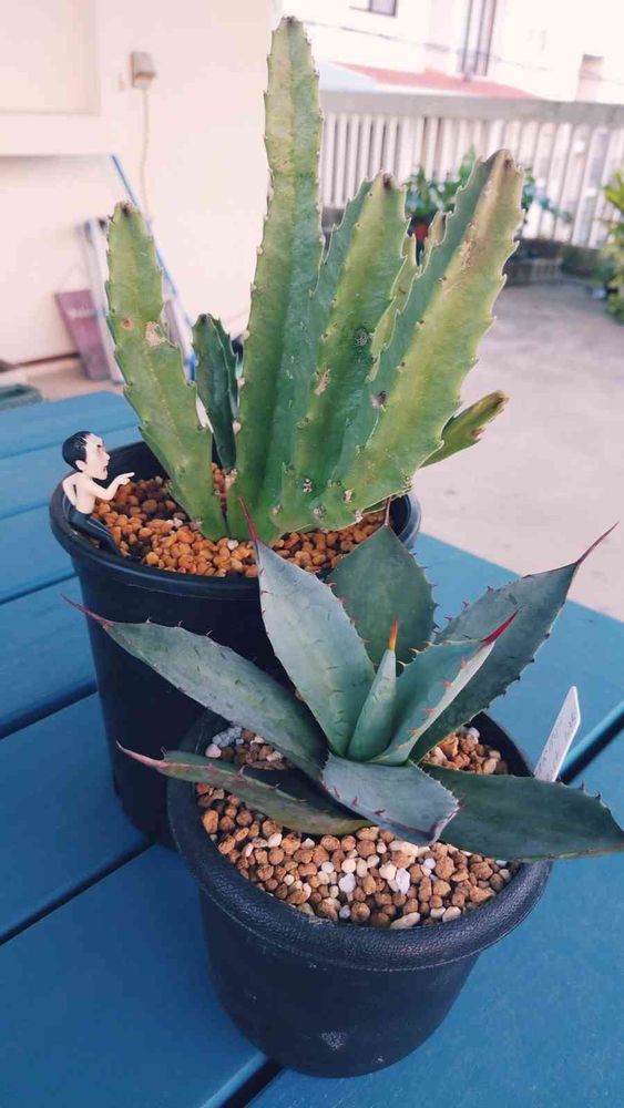 この間の植木市で狩っちゃいました、ガガイモさんとアガベのパリーさんだぞ🎵