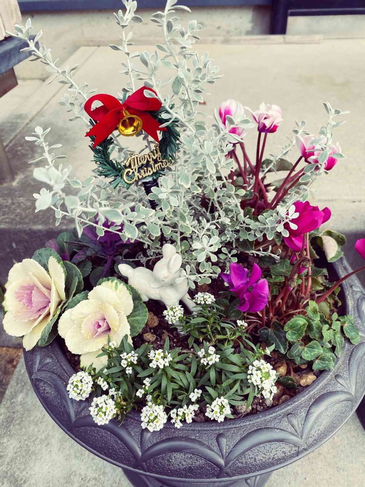 冬はシクラメンとミニ葉牡丹の組み合わせが可愛いくて大好きです。