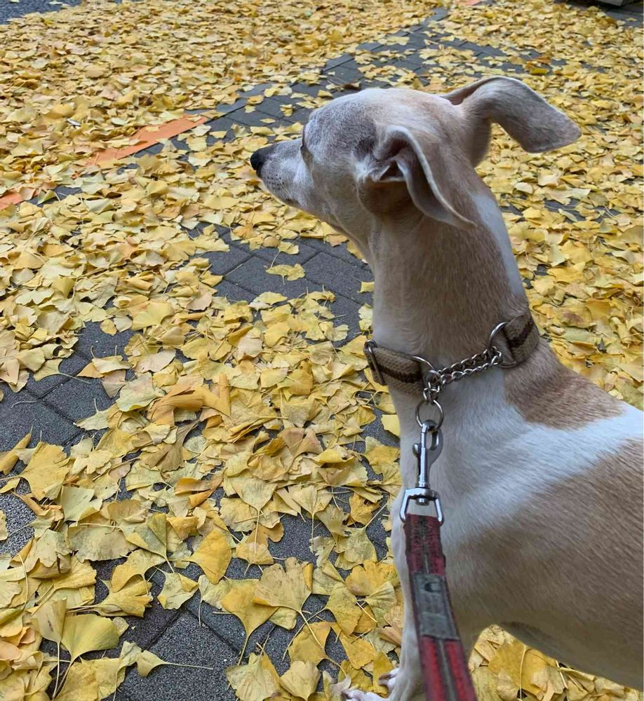 小さいから落ち葉がじゃまで🍂歩きづらいでしょうね🐕