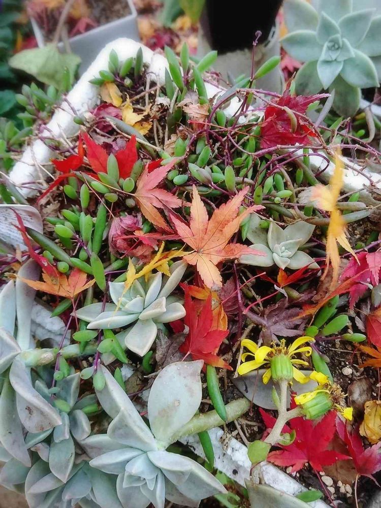 🍁の枯葉が混じり綺麗だわ😁🍀