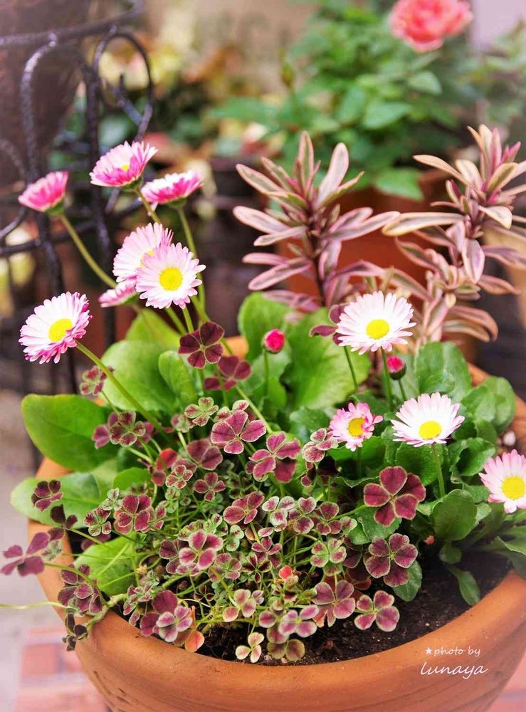 たぶん この寄せ植えの場合 主役は🎆デージーなんだろうけど やっぱり☘️クローバーが目を引きますよね。👀❗デージーさん ごめん😣💧💧