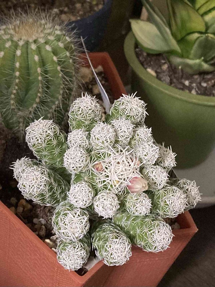 外で育てていた100均のサボテンに「何か色がついてる⁉︎」っと思ったら、何と蕾⁉︎😳お日さまの光をいっぱい浴びせたくて外に置いていましたが、寒くなってきたので室内に取り込んで気付きました😂ピンクっぽいので、きっとピンク色のお花ですね🥰ワクワク🥰楽しみにしています❤️