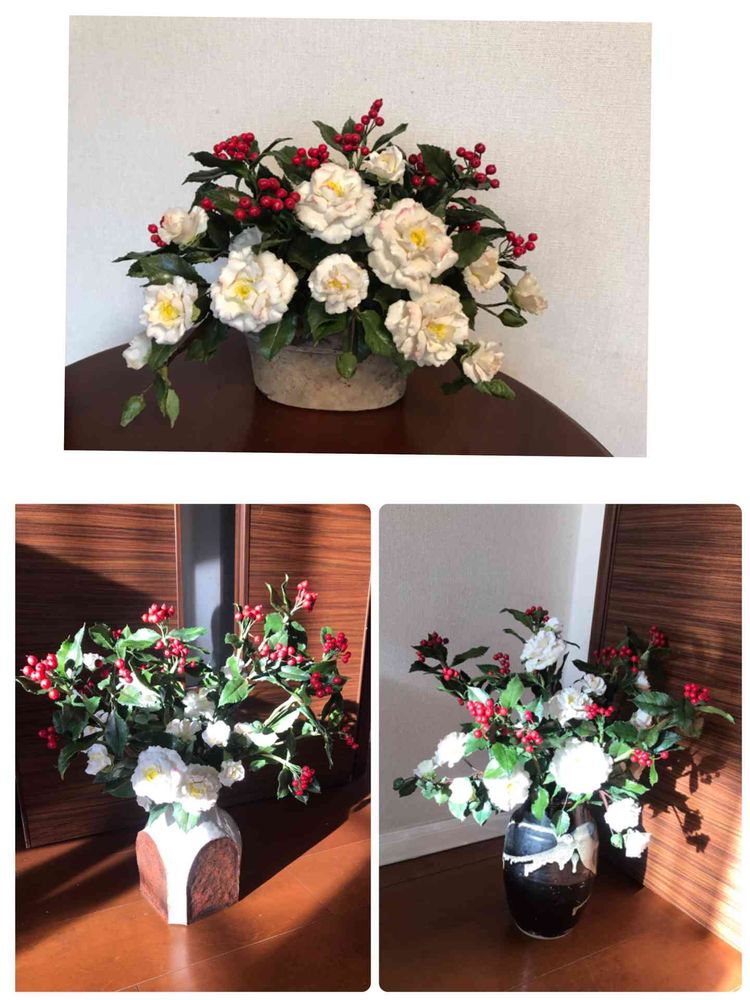 山茶花と千両をリフレッシュ