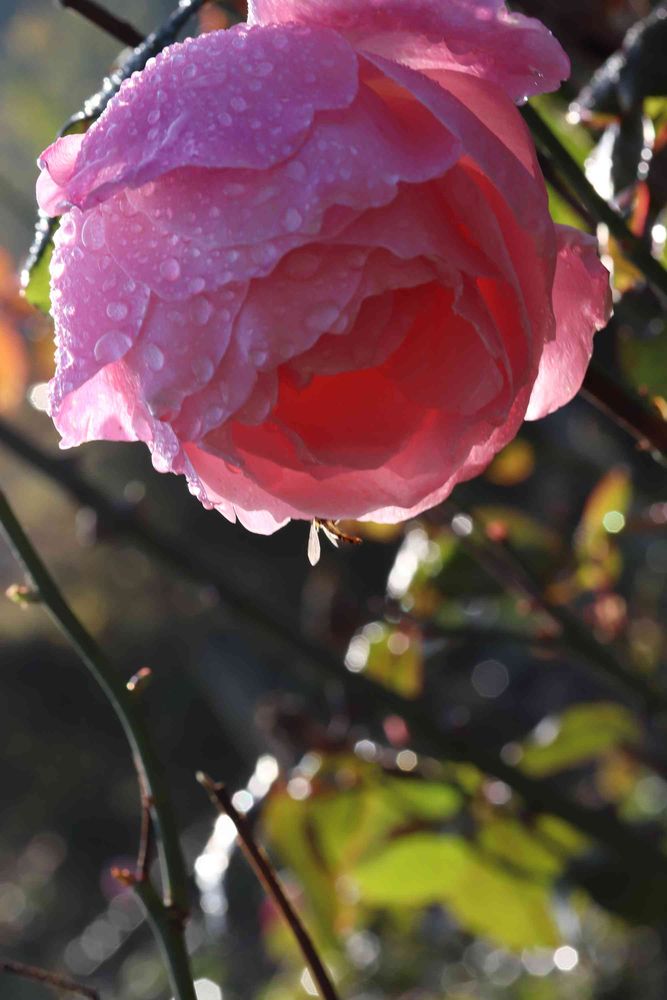 あさ小雨が降りましたが いまはやんで 陽が さしています 乾燥した 晴天続きだったので バラも 喜んでいるようでした