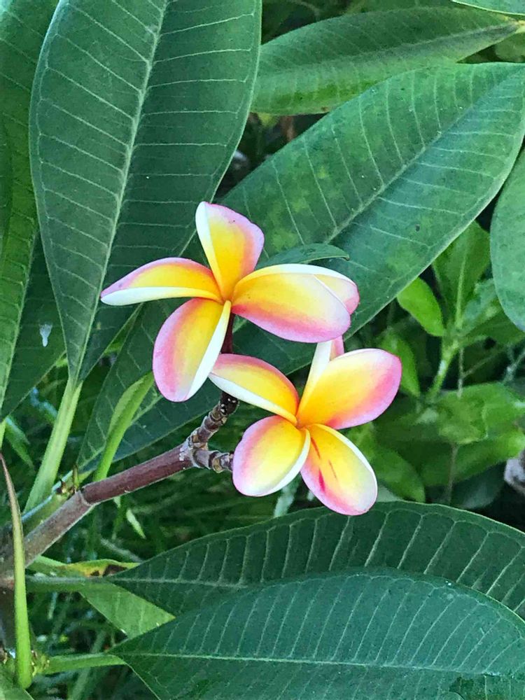 オアフ島カイルアで滞在していたバケーションレンタルの庭は、花でいっぱいでした。