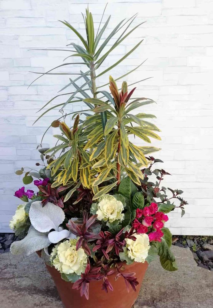 ユーフォールビア高さがあって、ダイナミックな寄せ植えになりましたね😆