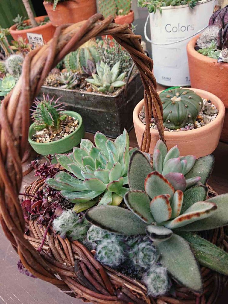 小さな籠で寄せ植え~
