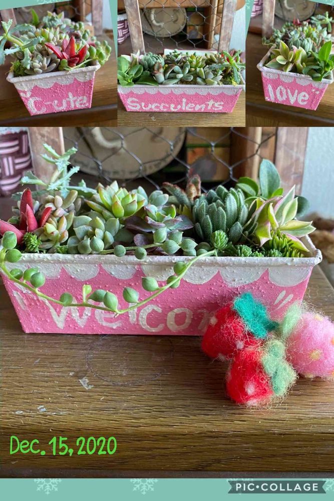頂いた可愛いピンクのパウンド型にウチで増えた子とポチッた子たちで寄せてみました🥰一緒に頂いた小人の祭りさんは水栽培で根っこ待ち中です🍀