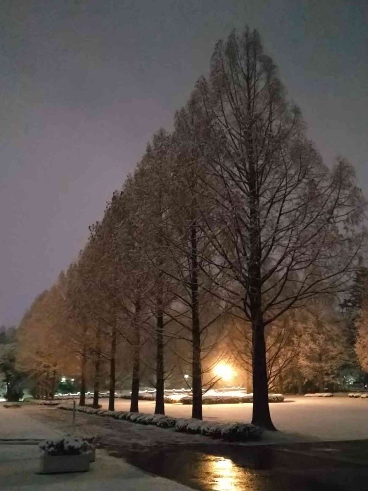 実と葉を落として、美しいシルクスクリーンのようなメタセコイアが雪をまとうと、またいっそう趣がありますね。