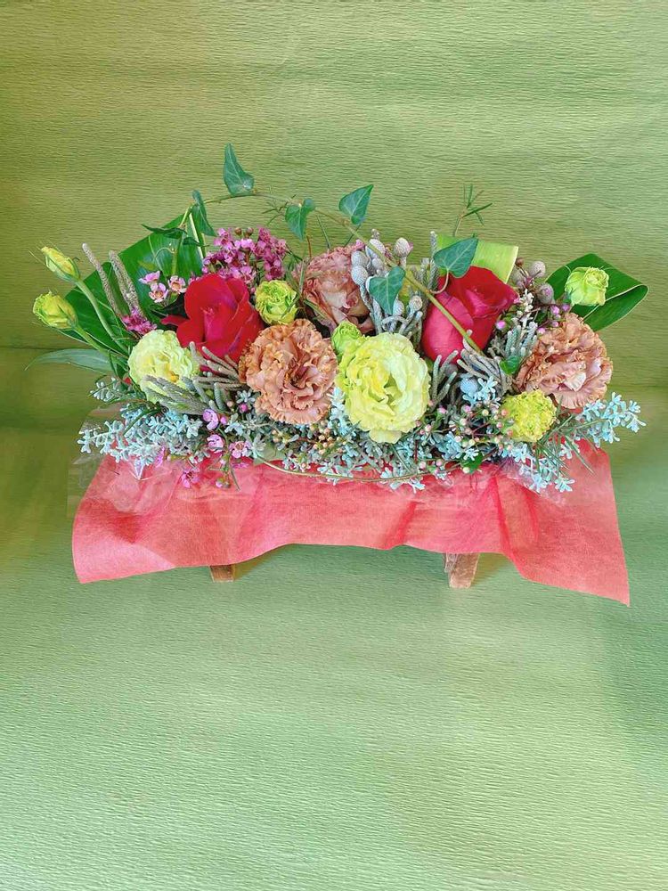 シルバーブルーニアが季節感あります。😍赤バラと相性良いです。