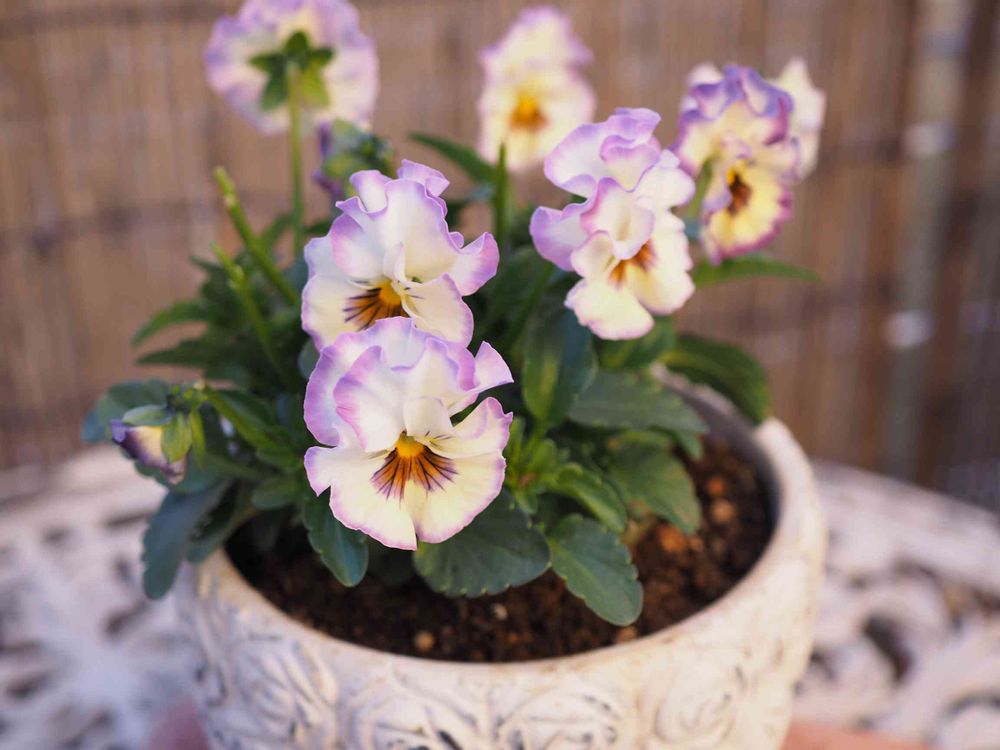 花びらの回りの薄紫色が綺麗でお連れしました❣️小さな鉢にお一人様で💕