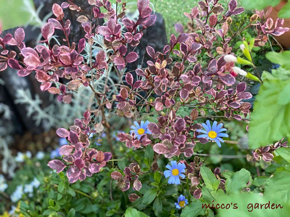 紅葉しましたよ〜近くに植えてるブルーデージーもパチリ!