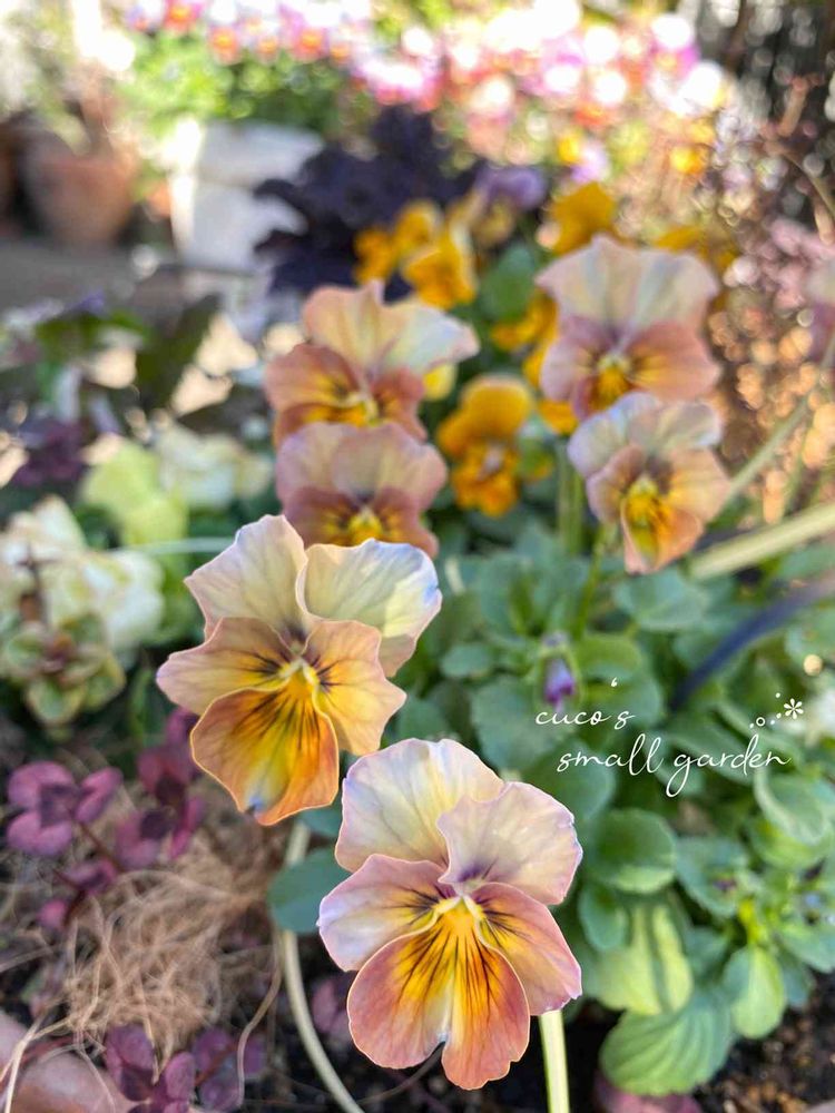 何色かよく分からないけど、この写真、ビオラ達がChoo Choo TRAINしているように見えて(え?意味わからない?)面白かったので投稿。