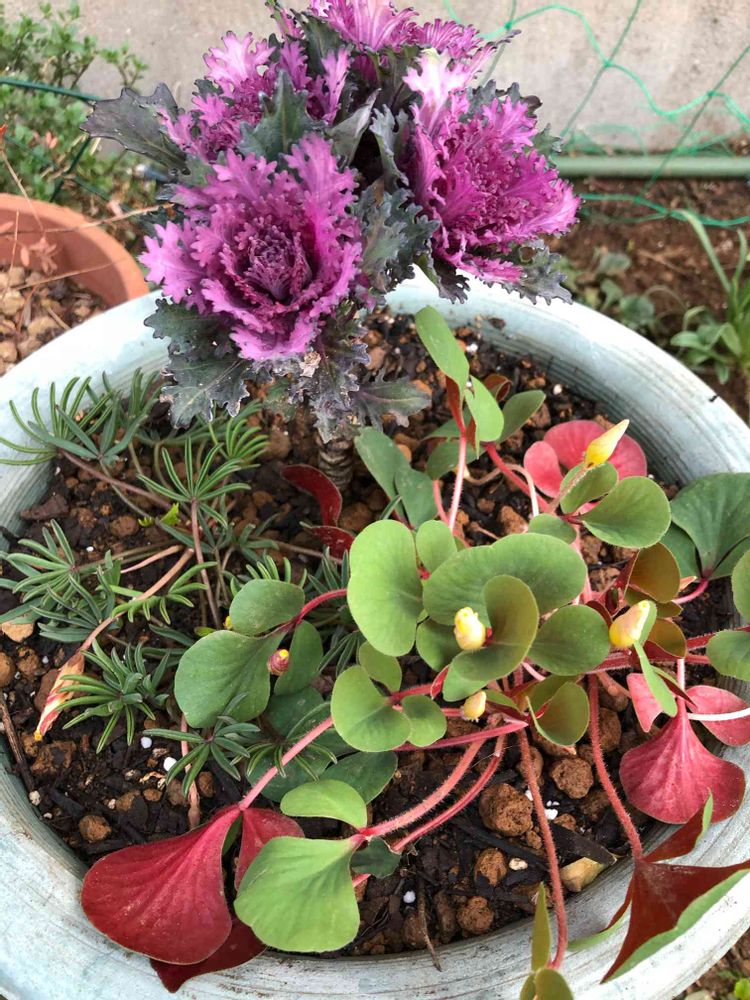 葉牡丹にオキザリスを寄せ植えしてみました😅