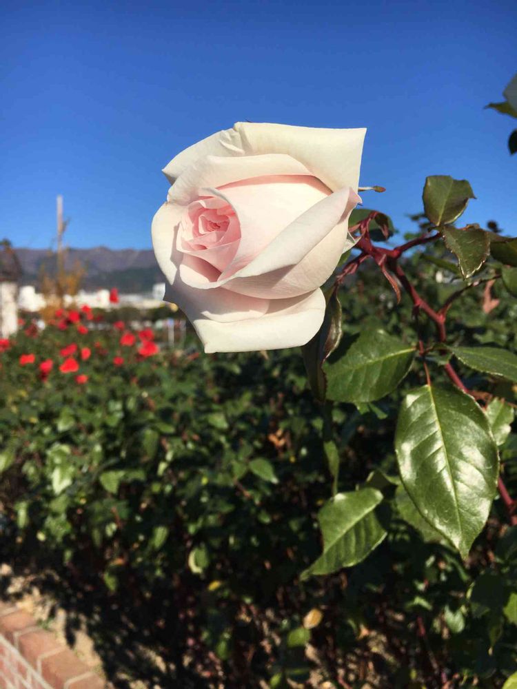 青空に優しい表情の薔薇🌹綺麗やね🤗