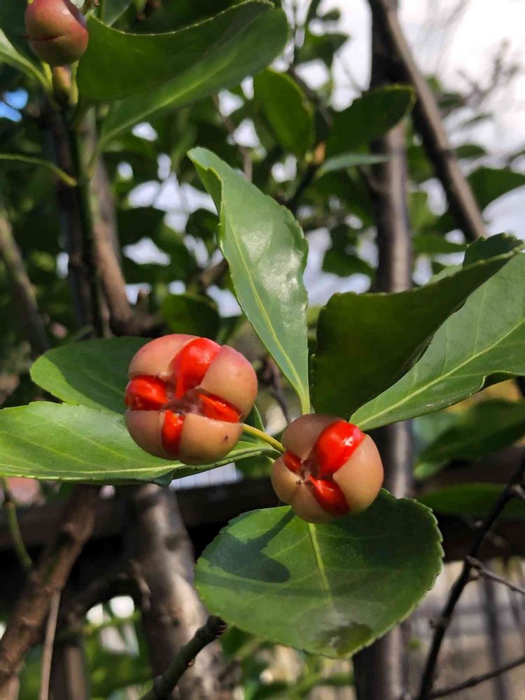 マサキの実がプリッ🎶と弾けて、綺麗な種がのぞきました(ほぼ実物大)