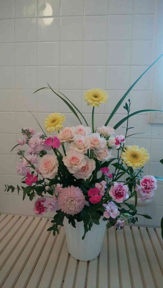 スーパーマーケットの花束3束使って格安にできました😂😂😄😄💐💐