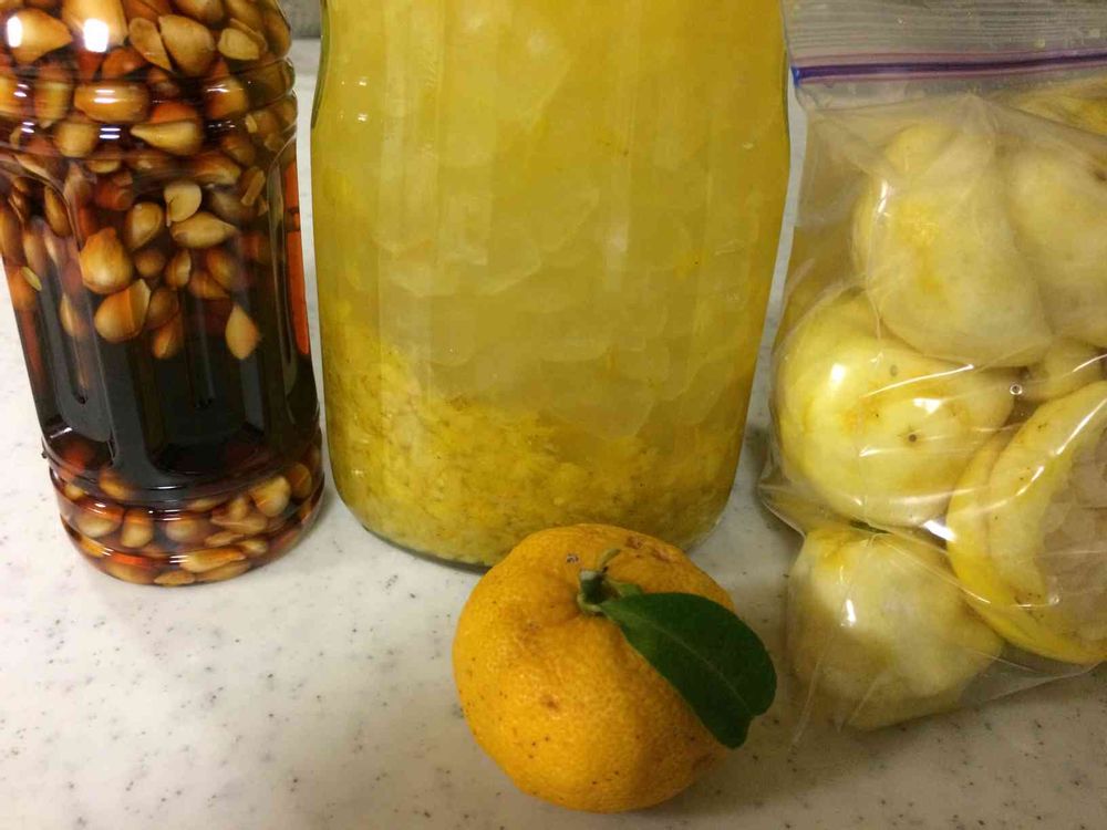 🍊左側 : タネも効能があると知り(ネットより)ポン酢でタネを漬けてみました。