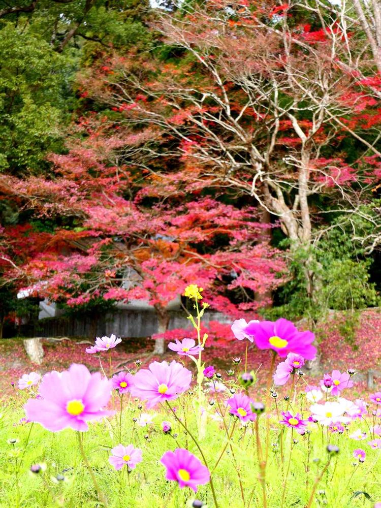 コスモスと紅葉