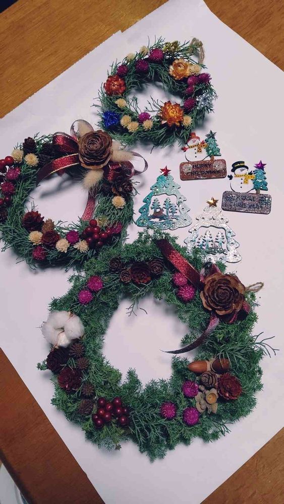 たかちゃん、いろんな材料で可愛いリースがこんなにできたんですね💓