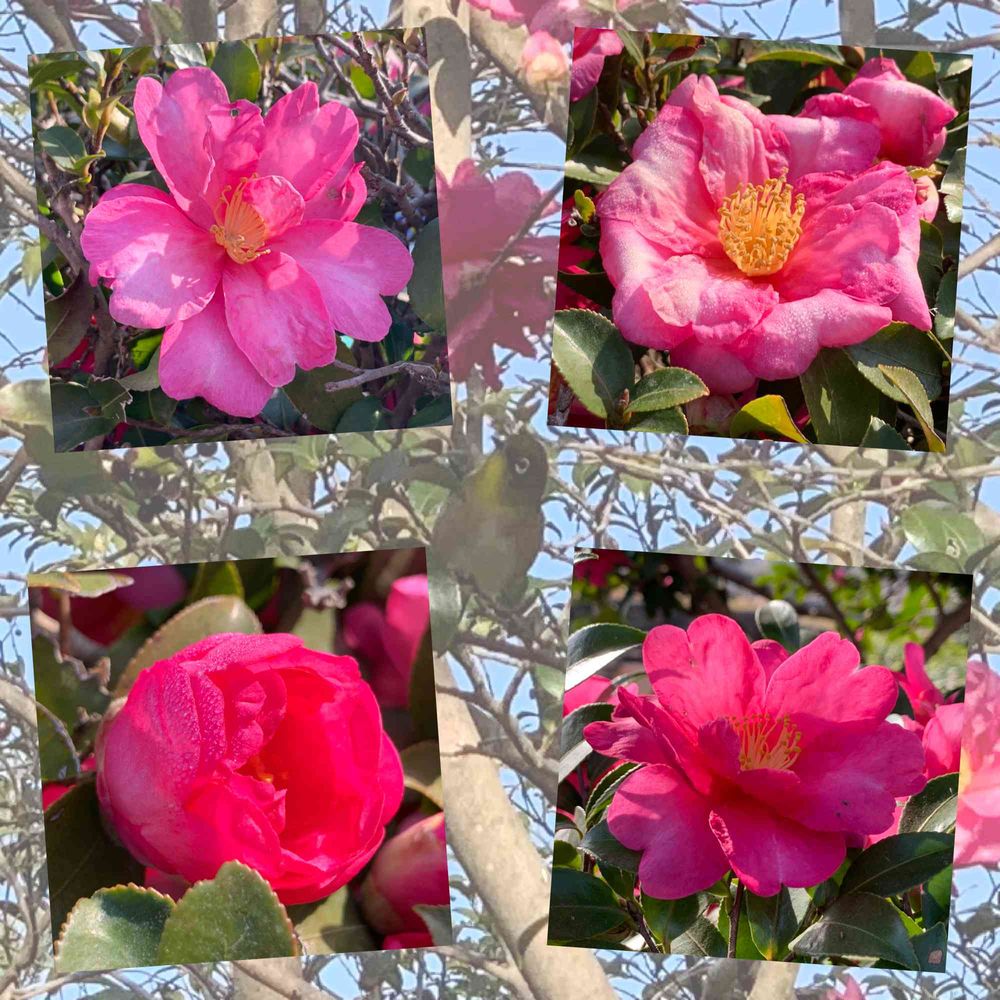 ざっと10羽以上のメジロが花をついばんでました 😃
