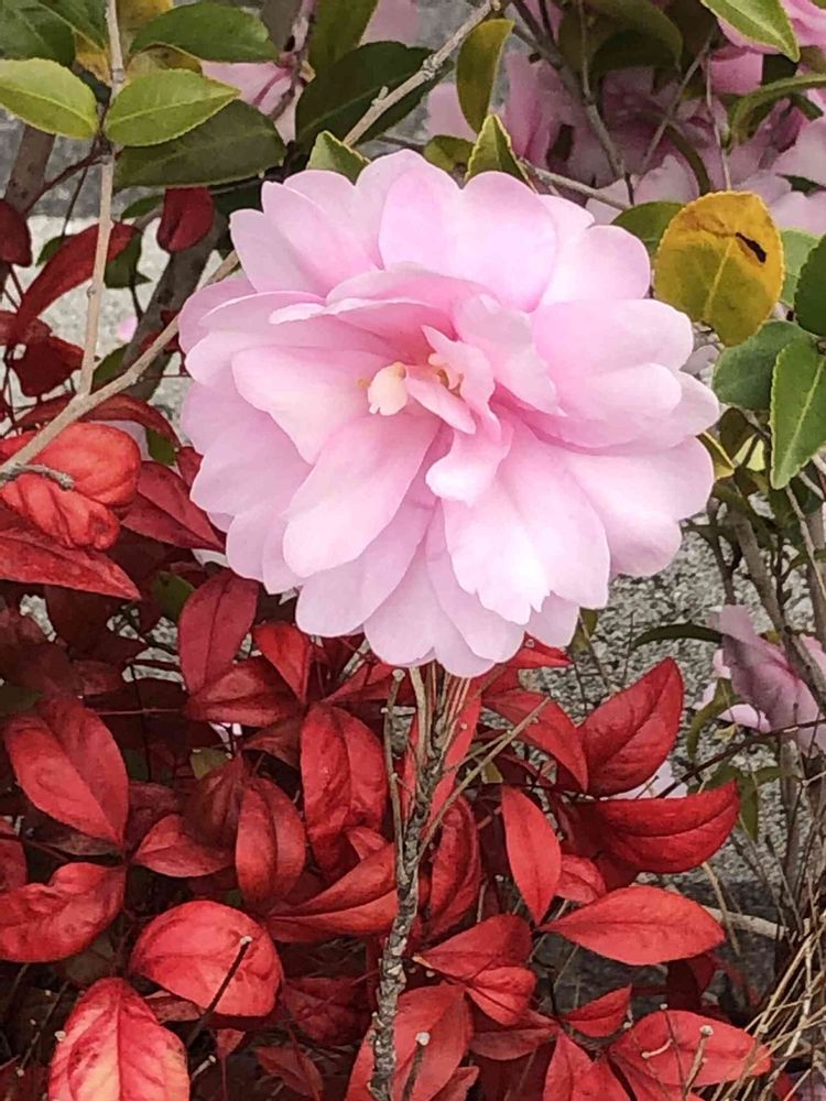 ピンクのお花と、赤い葉とのコントラストが気に入ってます🌸🔴