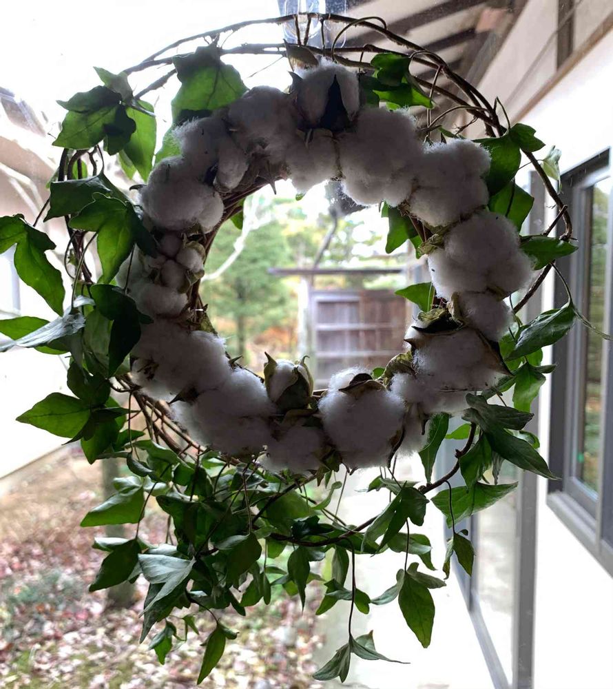 以前.GSで投稿されていた綿のリースを真似させていただきました🙇♀️