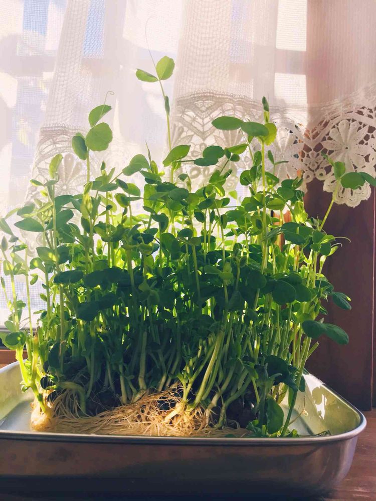 上の方だけ見たらカーテンのレースにとても似合ってて豆苗に見えません🤗💕