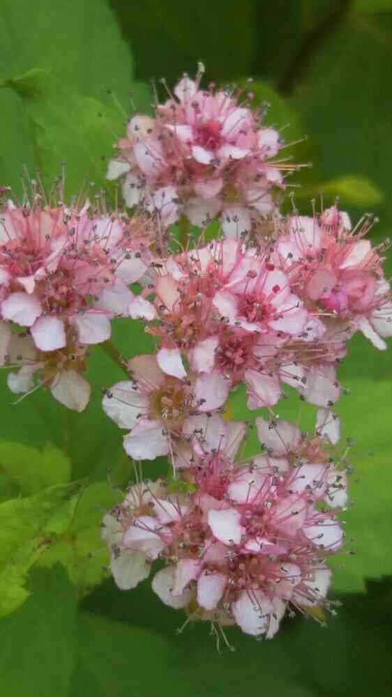 うちのシモツケはそれぞれ、葉の色とお花の色が違います❗