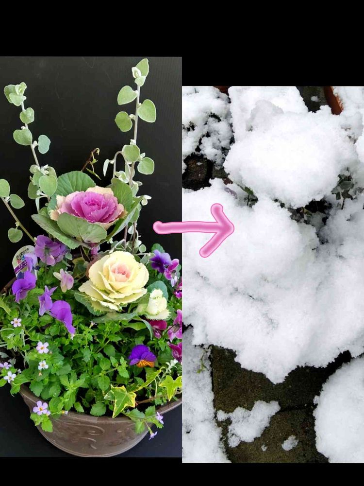 今は、土の上だけホンの少し雪❄️ありますが…お花の上の❄️は溶けましたよ~😂✌️(市内)