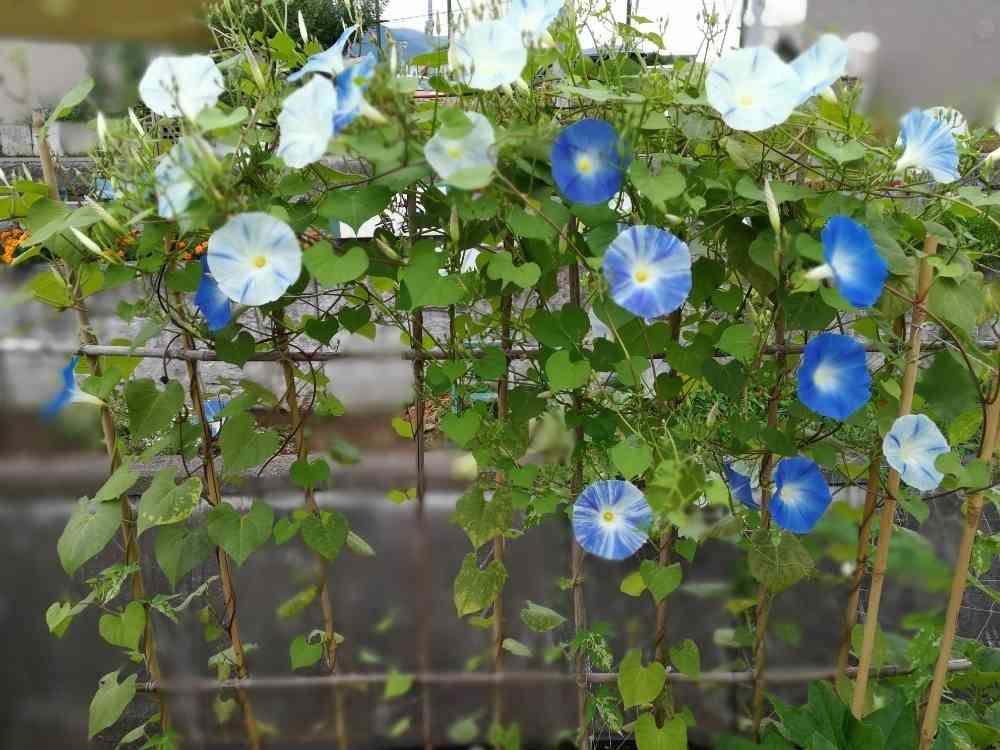 我が家の朝顔は一回咲いて枯れ、一回咲いては枯れ…で、こんなに沢山いっぺんに咲いてる姿は拝めません( ;∀;)