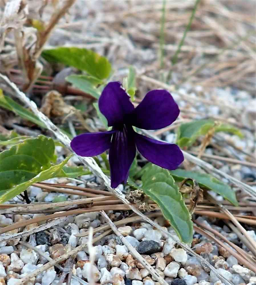 朝、氷点下に近い寒さの中、スミレが咲いていました😵