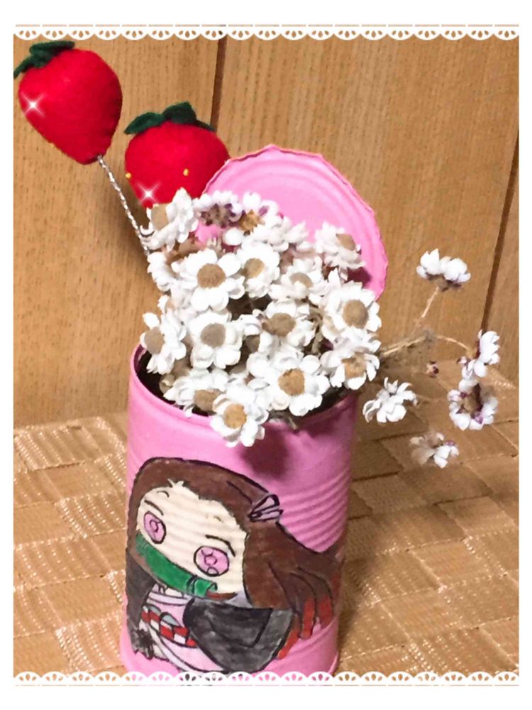 ぷりまみさん作の禰豆子のリメ缶にドライの花かんざしを入れてみました〜🌼💕