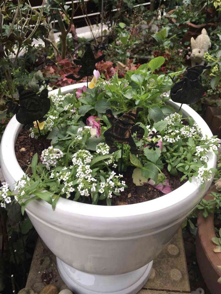 パンジーとアリッサムの寄せ植えです