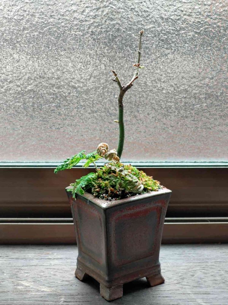 今年は途中で活力剤被害があり上手く葉が展開せずに落葉。しかし新しく小さな芽生えが見えるので枯れてはおりません。