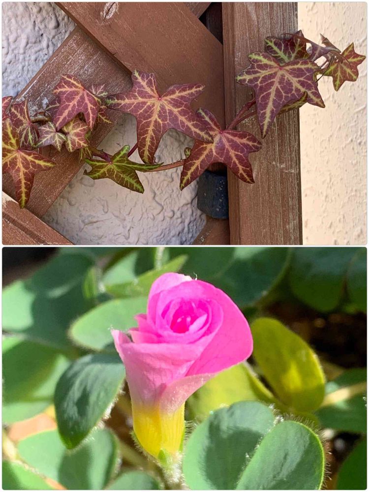 アイビーの紅葉🍁と開き始めるオキザリスを撮ってみました😊
