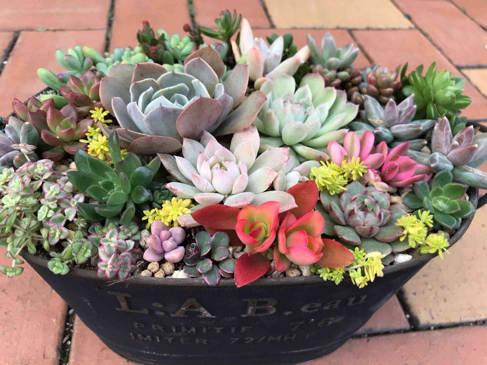 エケベリアだけの時は、主役から植えるけど、背の高くなる子を一緒に植える時は、奥から、背の高い子を植えていくと上手く出来ると思う😆