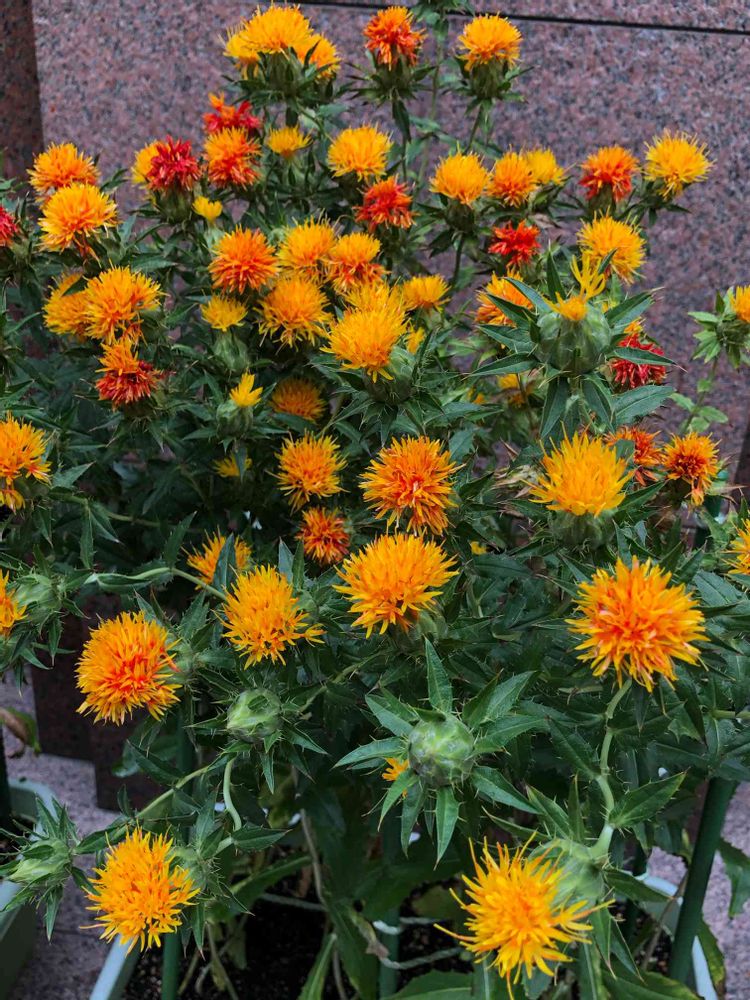 まだ蕾のうちから鉢植えがならび、紅花が咲いていく様子を通勤の楽しみにしていましたよ😍🌼