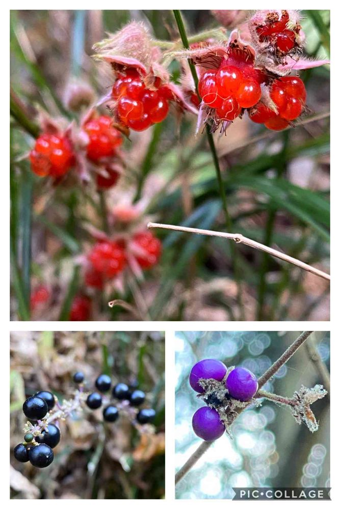 フユイチゴ、ヤブラン、ヤブムラサキ♫