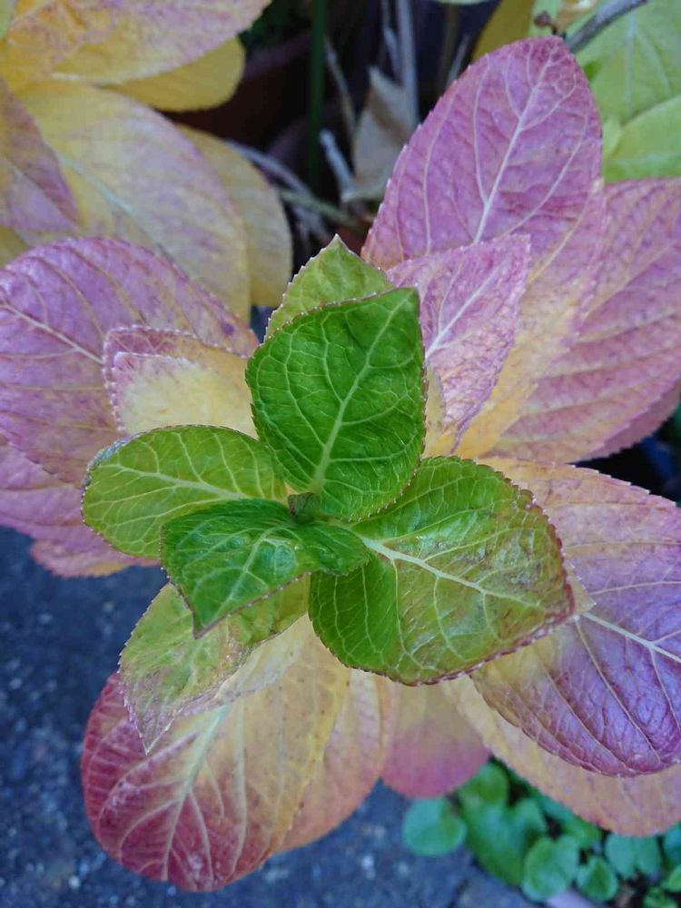 紫陽花のお花には注目したことがありましたが 葉っぱがこんな素敵なお色になるなんて…🍀