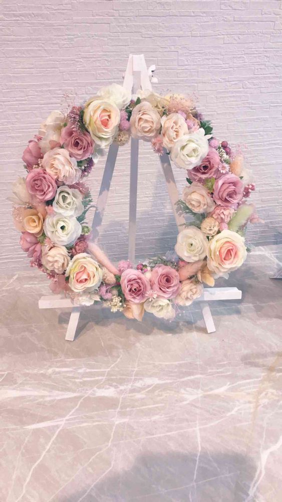 前回アップしたpicのリースがブルー系でしたので、ピンクベースのリースを作ってみました😄