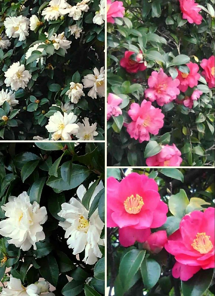 赤と白の山茶花の花、それぞれ引き立てているようですね♥♡♥♡