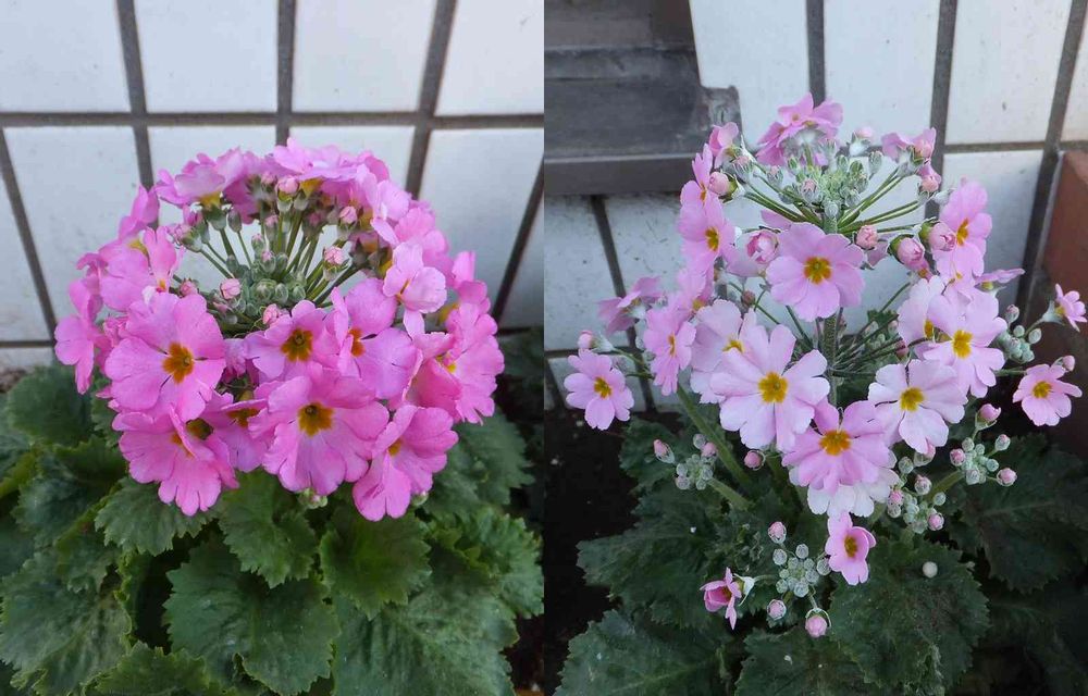 朝の通勤途中。 「プリムラ・マラコイデス(桜草)」が綺麗に咲いていました。 パチリ、パチリ