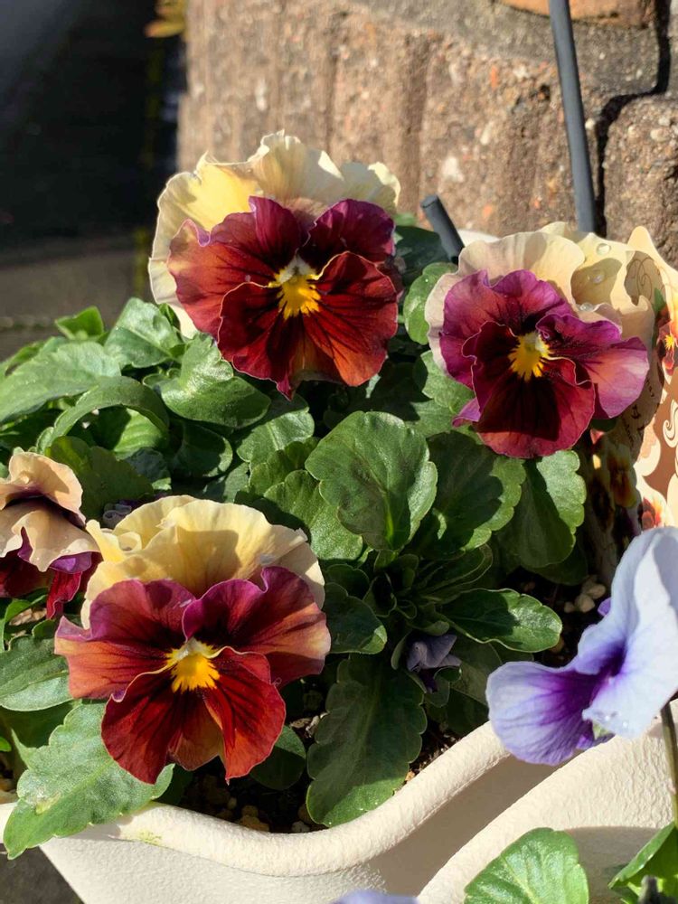 カラフルなパンジーもかわいいけど、こちらの、アンティークカラーのように渋いパンジーがあるとぐっとおしゃれになりますね😊✨✨
