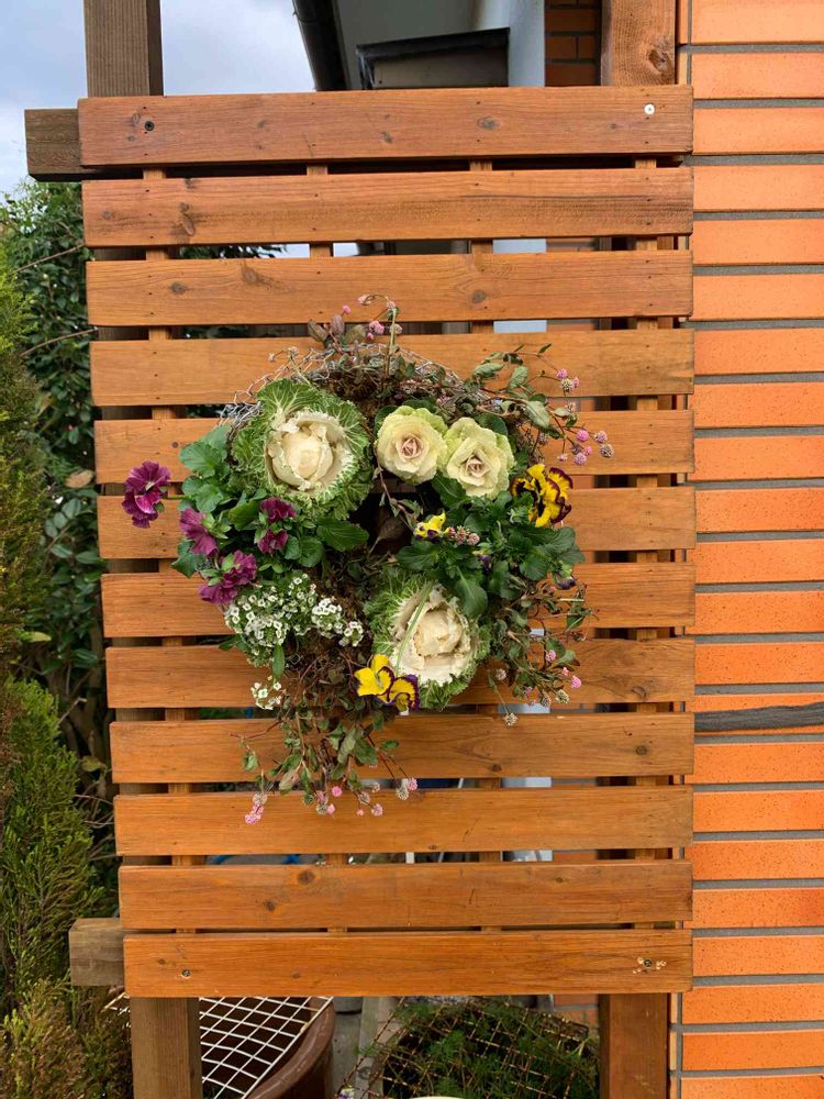 🧱の柱の色とピッタリで、ハンギングリースが映えますね✨